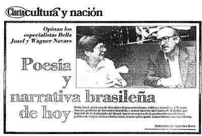 Bella Jozef, profesora de literatura hispanoamericana, crítica y ensayista, y Wagner Novaes, profesor de literatura brasileña y actual director del Centro de Estudios que depende de la Embajada del Brasil, hacen un repaso de la producción novelística y poética de su país en una charla cuyos tramos principales trascribimos en esta edición.